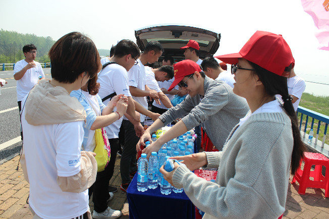 ![]() 活动沿途湖景秀丽,绿树掩映,微风徐徐,阳光照耀下的同济人各个疾步前行,奋勇争先。为了保障参加人员得到及时的帮助和能量补给,行进线路中每5KM安排一个补给站,提供食品、水、药品等物品并安排车辆待命。在每个补给站公司志愿者们都热情服务,主动提供帮忙。
