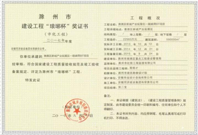 同济公司承建的“滁州市南谯新城产业拓展区一期路网BT项目”获2017年度滁州市建设工程“琅琊杯”工程发布者:周晓宁 点击数:592 更新时间:2017/12/06