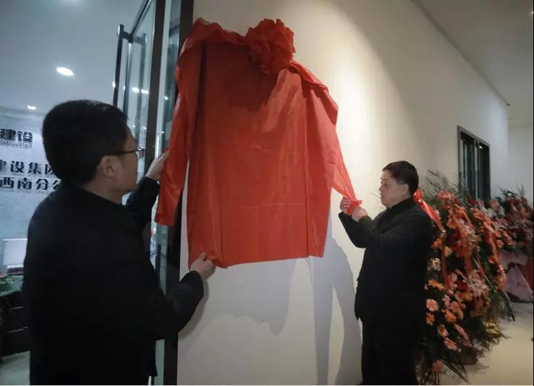 上午10:18分,在同济西南分公司的办公场所,同济公司董事会董事、副总经理彭飞与贵州省安徽商会党支部书记詹从国共同为同济公司西南分公司揭牌。