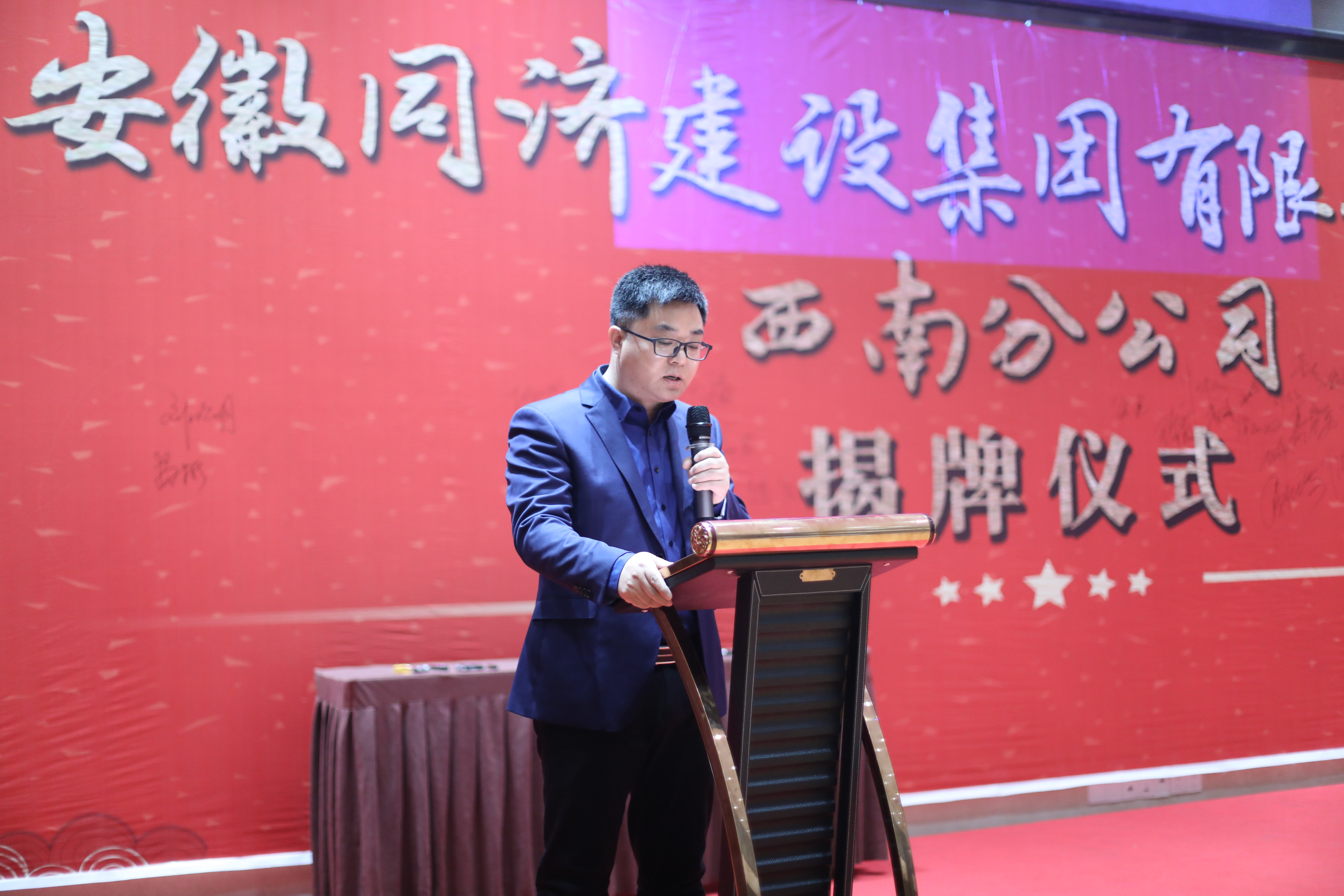 董事会董事、副总经理、同济路桥公司总经理刘其军在致辞中对各位嘉宾的到来表示感谢,刘总简要介绍了同济公司发展历程和概况,表示成立西南分公司是同济公司实施“走出去”发展战略迈出的重要一步,是整合西南区域资源,拓展西南区域市场的一次重要探索实践。希望西南分公司在同济“信·德”文化的引领下,诚信经营,踏实做事,在西南地区树立同济建设的品牌形象,为“百年同济”目标做出积极贡献!