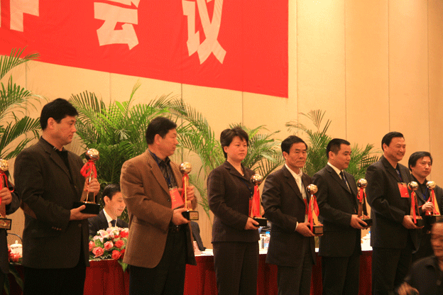 大会同时对荣获省、部级以上表彰的先进集体和先进个人及安徽省建设工程“黄山杯”奖项目等予以表彰,郝文玲常务副总代表同济公司上台领取荣获的省建设工程“黄山杯”奖。(文/图 刘长丰) 郝文玲常务副总代表同济公司上台领奖