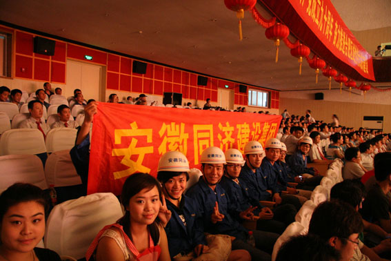 集团参加合肥市建设系统文艺汇演发布者:系统管理员 点击数:173 更新时间:2011/06/14 为纪念中国共产党诞辰90周年,弘扬时代精神,发展先进文化,充分展示全市城乡建设成就和建设者时代风采,6月11日,合肥市建设系统文艺汇演隆重举行,来自我市数百名建筑行业从业者观看了演出。 下午2:00,演出拉开帷幕。小品、沙画表演、诗朗诵、京剧、黄梅戏、舞蹈、独唱等节目让现场笑声不断、掌声不断。 由集团选送的小品《十五分钟》描述的是同济公司一名驻外现场工程师舍小家为大家的无私奉献精神,表现了同济人作为城市的建设者,甘于付出、勇于进取和拼搏的精神风貌。小品根据实际改编的台词笑点不断,真挚动人,让人回味无穷,加上演员们的精彩演出,让现场同行找到了心灵上的共鸣,受到一致好评。(李蕾钦)